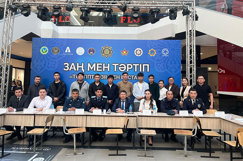 Дөңгелек үстел ашық диалог форматында ұйымдастырылып, студенттердің құқықтық санасын қалыптастыруға және заңға деген құрметін арттыруға бағытталды.