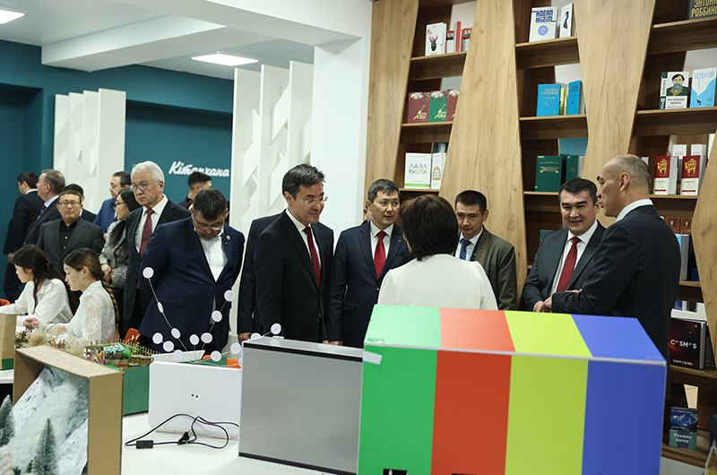 Кітапханада заманауи электронды дерекқорлар, жаңартылған әдеби қор көрсетіліп, қонақтар дәстүр бойынша «Қонақтар кітабына» өз тілектерін жазып қалдырды.
