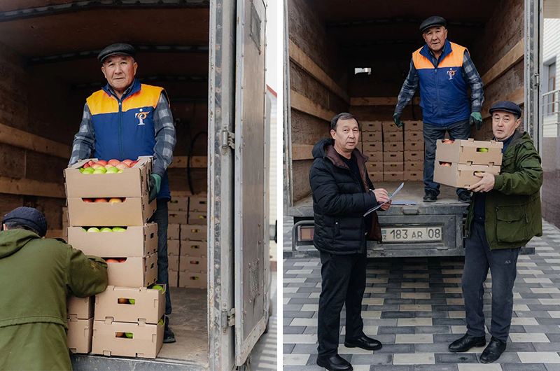 Бүгін университет пен колледждің барлық қызметкерлеріне Құрылтайшылар атынан отандық жеміс — алма таратылды.