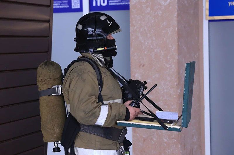 Оқу-жаттығу барысында шартты өрт жағдайы ұйымдастырылып, эвакуациялау тәртібі көрсетілді. Студенттер қауіп төнген сәтте ғимараттан қауіпсіз әрі жылдам шығу жолдарын меңгеріп, өрт кезінде өзін-өзі ұстау ережелерімен танысты. Сонымен қатар өрт сөндіру бөлімінің қызметкерлері алғашқы өрт сөндіру құралдарын пайдалану жолдарын түсіндіріп, арнайы техникалардың жұмысын көрсетті.
