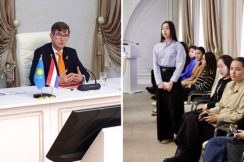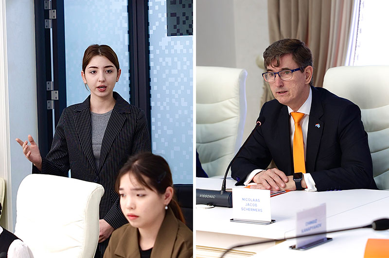 Одан кейін Елші студенттермен ашық форматтағы кездесуге қатысты. Еркін пікір алмасу барысында білім алушылар Нидерландтың білім беру жүйесі, жастар саясаты, халықаралық гранттар мен академиялық ұтқырлық мүмкіндіктері жөнінде сұрақтар қойды. Нико Схермес мырза өз кезегінде Нидерланд елінің инновация, тұрақты даму және жасыл технологиялар саласындағы тәжірибесімен бөлісіп, екі ел арасындағы достық қарым-қатынастың маңыздылығын атап өтті.